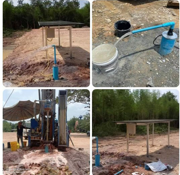 ติดตั้งปั๊มเพื่อทดสอบน้ำ: หลังจากเจาะบ่อเสร็จสิ้น จะต้องทดสอบน้ำบาดาลเพื่อดูปริมาณน้ำที่ไหลออกมา (ลิตรต่อชั่วโมง) และตรวจสอบคุณภาพน้ำ (เช่น ค่า pH, ความเค็ม, หรือสารปนเปื้อน)
